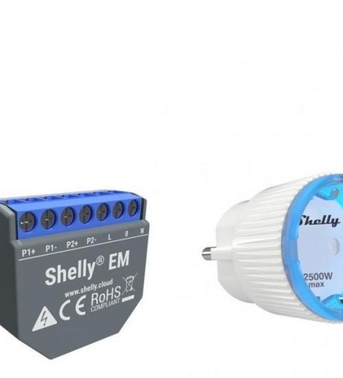 - Relé Shelly EM 50A – medidor de consumo Wi-Fi